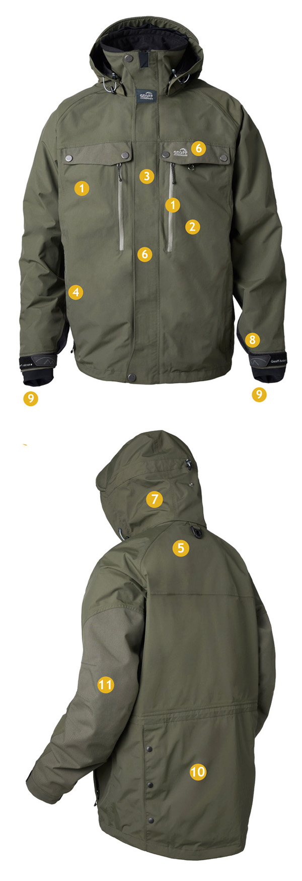 To vandtætte brystlommer placeret, så de er lette at tilgå. Nye YKK® AquaGuard lynlåse åbnes og lukkes let, så du nemt kan åbne og lukke lommerne.